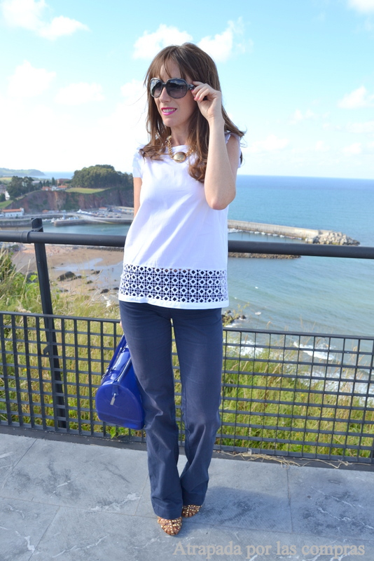 Un jersey de manga corta es una prenda perfecta para un look de entretiempo. El que os enseño hoy es de ROCOCOA CANDÁS y me pareció ideal, combina tres colores, azul marino, camel y blanco, que casan a la perfección y el volante en las mangas lo hacen un prenda especial y diferente. Lo combiné con un pantalón azul marino, una blazer blanca y como buscaba un look cómodo pero estiloso de calzado opt ...