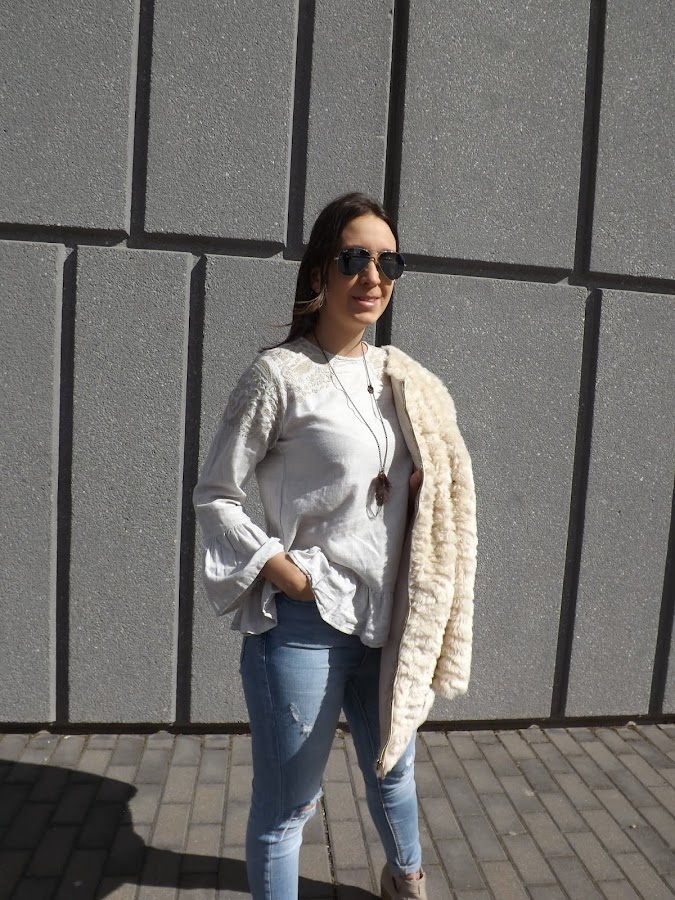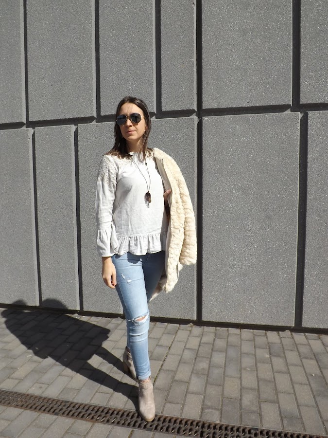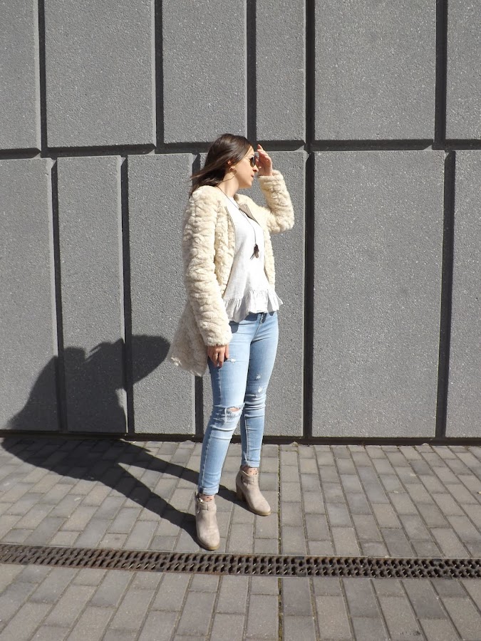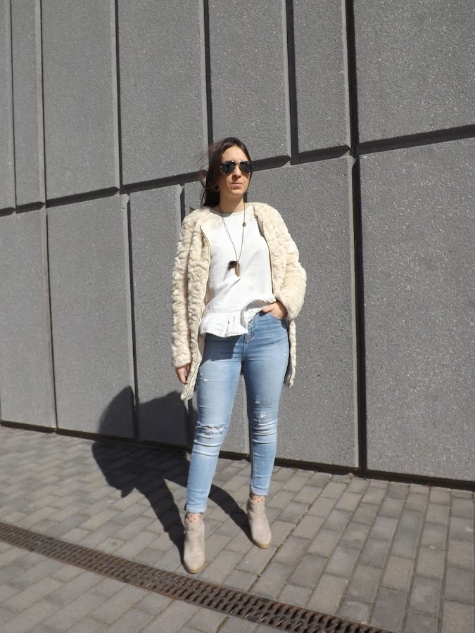 La combiné con jeans de nueva temporada de Stradivarius y botines y abrigo de otras temporadas (qué ganas ya de aparcarlos hasta el invierno que viene...)