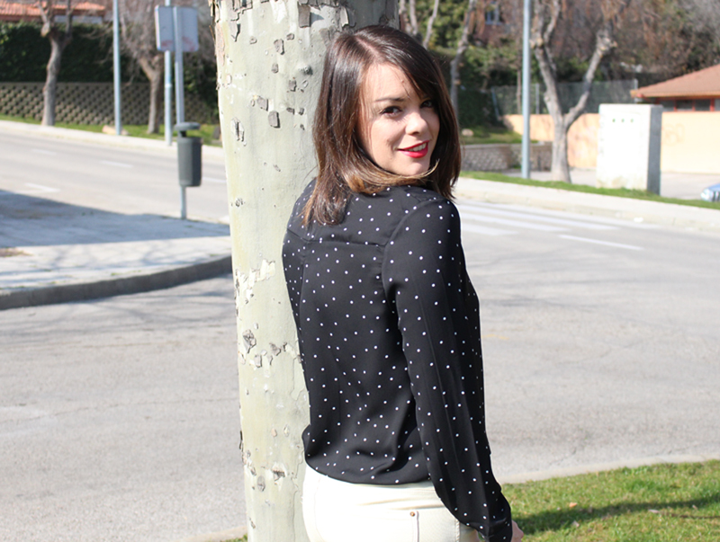El post de hoy trae un nuevo outfit y en este caso estoy estrenando blusa de SheIn en negro con lunares blancos o como sería lo mismo en inglés "black polka dot blouse". De hecho, vais a ver más de una blusa en mis outfits porque ahora me ha dado por ellas, no sé, en cada época nos da por una cosa y yo ahora estoy en la de las blusas, porque me encantan como quedan, las hay de mil maneras y estampados y creo que es una prenda muy versátil que se puede combinar genial para ir más casual o en cambio, ir arreglada. Así que nada, empieza la tanda de blusas, jeje.