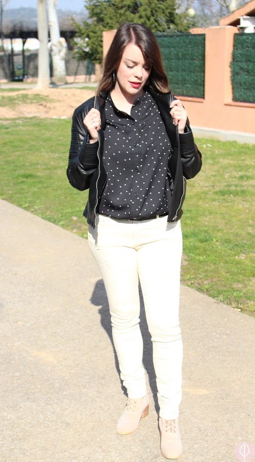 Están haciendo unos días casi primaverales en Madrid en las horas centrales del día y opte por este look para salir a pasear a medio día y no pasé nada de frío, y eso que la camisa y la chupa apenas abrigan y la chupa la llevaba abierta, pero iba genial, así que veo un look perfecto para primavera.
