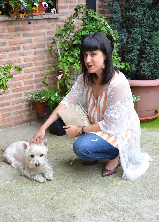 Por otro lado esta la blusa, tan de moda esta temporada. Seguro que la habéis visto en un montón de tiendas con los mismos colores. Esta es de Rosegal, al igual que los pendientes, que son una monada.