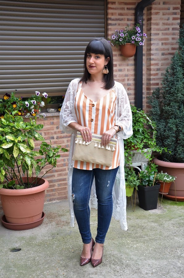 Hoy os traigo un nuevo look, con kimono de Shein, que ya me habéis visto estos días atrás con la ropa de baño y es que es una prenda super versátil y muy bonita. Tiene ese toque romántico que me encanta y es tan ligero y cómodo que le voy a dar mucho uso este verano.