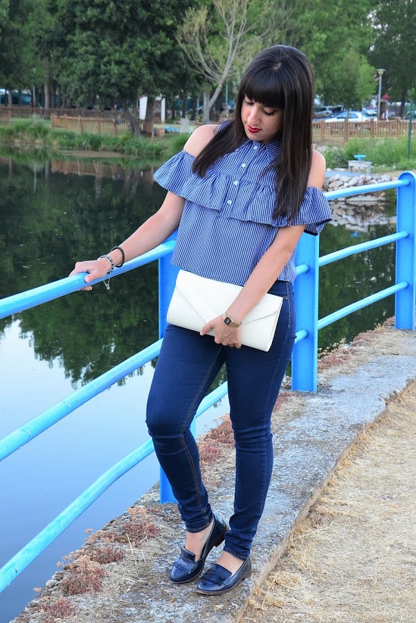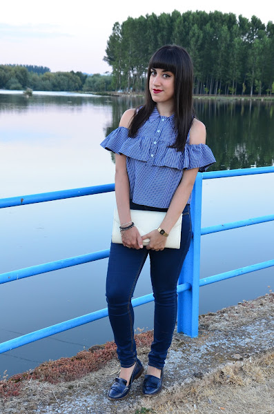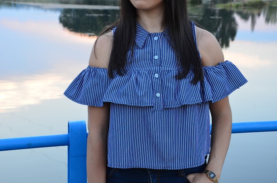 Este verano la moda ha sido llevar los hombros al descubierto y una de las prendas mas vistas han sido las blusas del estilo de la que hoy os muestro. La mía es de Shein. La tela es muy fresquina para el verano aunque no me acaba de convencer la zona de los botones por que se abre un poquillo y me resulta algo incomoda. No se si se debe a que no es mi talla o que estaba mal rematada. En todo caso la talla es única.