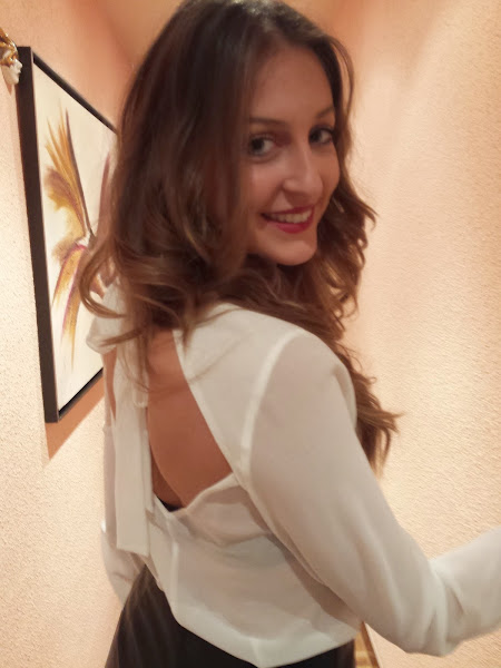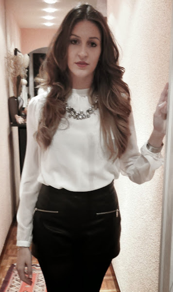 La camisa por delante es de cuello subido por lo que añadí un collar joya para darle un toque chic.