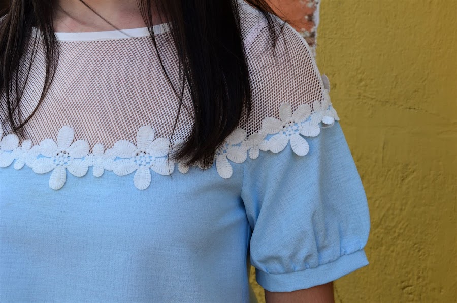 La blusa es una maravilla, no solamente me gusta el detalle de las margaritas también me encanta la forma de las mangas, me recuerdan a mi infancia jajaja. Y lo que también es un puntazo es el precio, ¡¡¡no alcanza los 11!!!. Para que tengáis una referencia, yo me pedí una S.