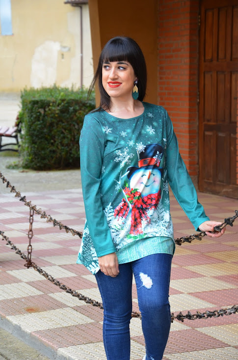 Queda muy poquito para que acaben las Navidades, que por cierto, este año se me han pasado volando y no quería dejar pasar la oportunidad de estrenar esta adorable blusa en color verde con estampado de un adorable muñeco de nieve y copos. Es una blusa muy navideña, con una calidad espectacular y la podéis encontrar en la web de Rotita.