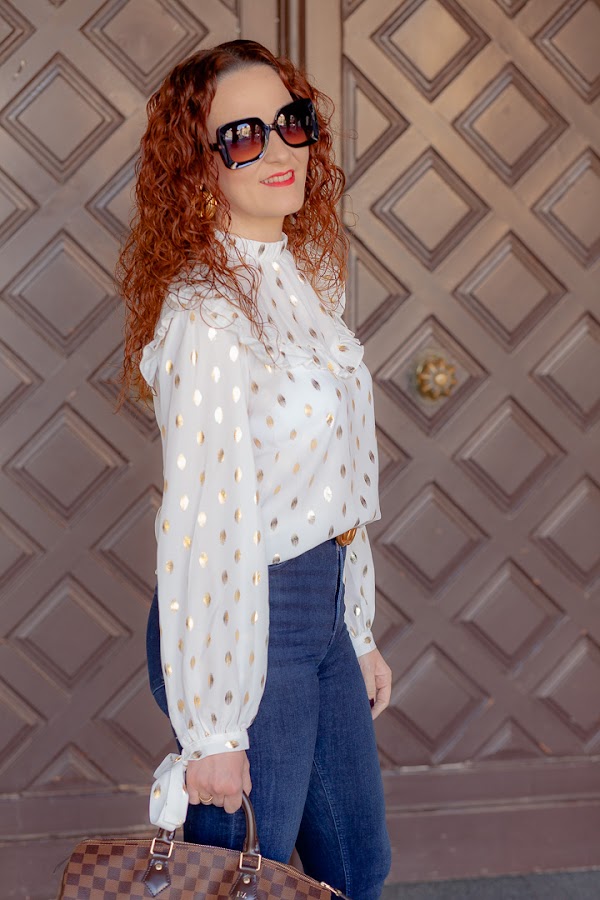 Blusa/Blouse: Shein . Jeans:Zara. Cinturón/Belt: Sweet Coquete. Pendientes/Earrings: Casilda Finat MC. Anillo/Ring: Tienda Local/Local Store. Zapatos/Heels: Zara. Bolso/Bag: Louis Vuitton.