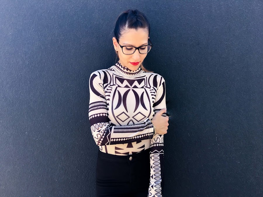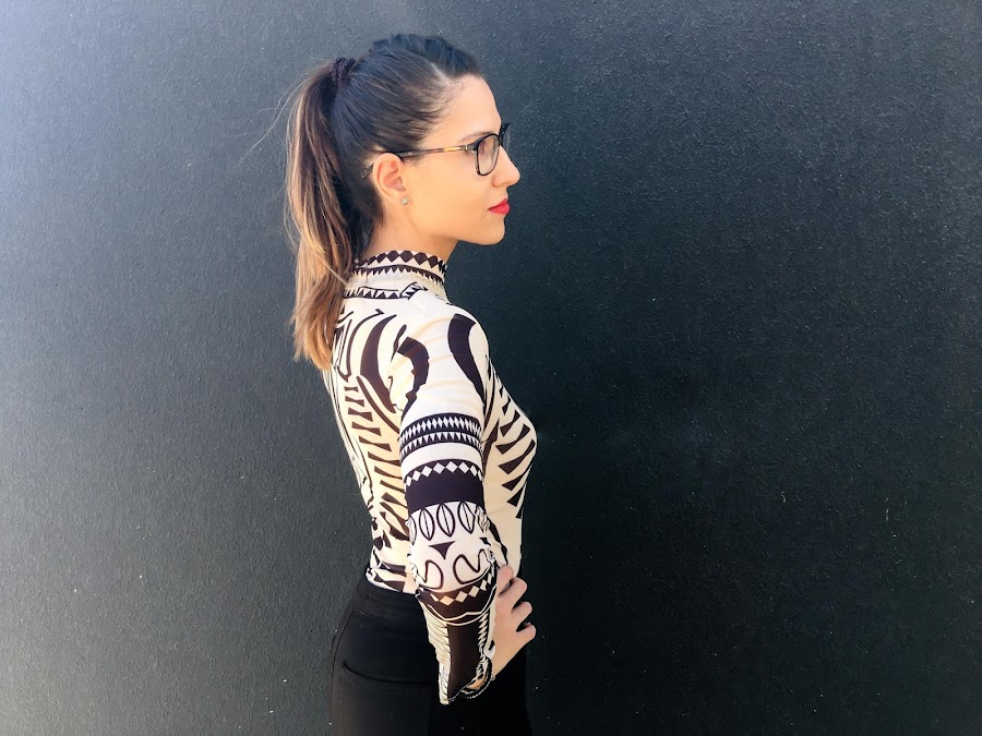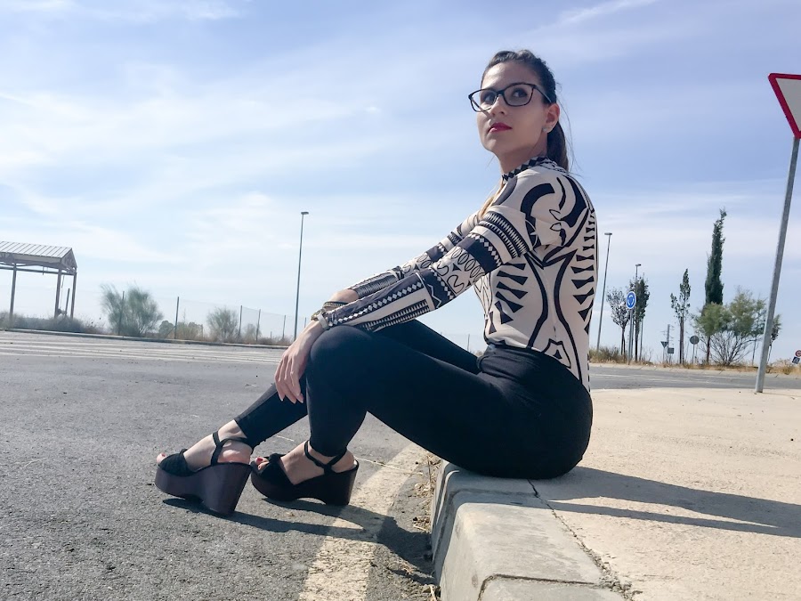 El body que os enseño hoy es perfecto para este tiempo, ya que es de una tela muy fina. En un tono nude con un estampado geométrico negro. La tela es un poco transparente, no digáis que no os avisé, pero podéis ponerlo con ropa interior nude y sin problema. (De hecho, yo lo tengo y cómo podéis comprobar no se ve nada).