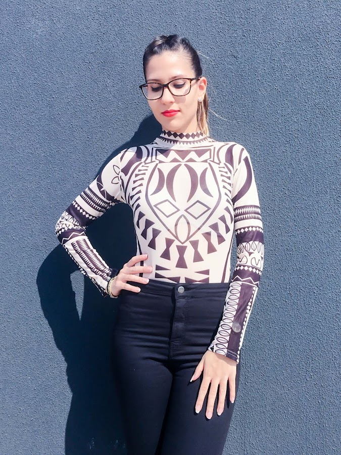 The body that I show you today is perfect for this time, since it is a very fine fabric. In a nude tone with a black geometric print. The fabric is a little transparent, do not say I did not warn you, but you can put it with nude underwear without problem. (In fact, I have it and how you can check not see anything).