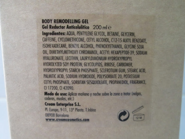 En esta foto os dejo sus ingredientes... Espero que la podéis apreciar bien, jejeje. Como podéis ver, no contiene nada de parabenos, aunque si vemos que tiene algo de alcohol y que es un anticelulítico rico en cafeina, con el fín de ayudar a eliminar la piel de naranja.