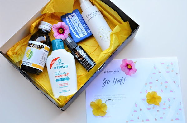 Ya esta aquí la BODYBOX, la caja mas molona con productos de las mejores marcas y este mes con su lema Go Hot! nos van a ayudar a hacer mas llevadero el mes mas caluroso del año con los productos de belleza mas refrescantes