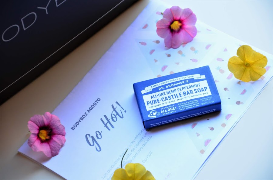 1- DR. BRONNERS All-One Peppermint Soap: aquí os presento el jabón natural nº1 en USA y es que lo tiene todo... es ecológico, vegano, de comercio justo, 100% biodegradable y reciclable. Está elaborado a base de aceites esenciales puros de Coco, Oliva, Jojoba, Menta y Cáñamo. Es un producto que sirve para todo, ya que limpia suavemente cuerpo, rostro y cabello. Su precio es de 6€ la pastilla de 140g.
