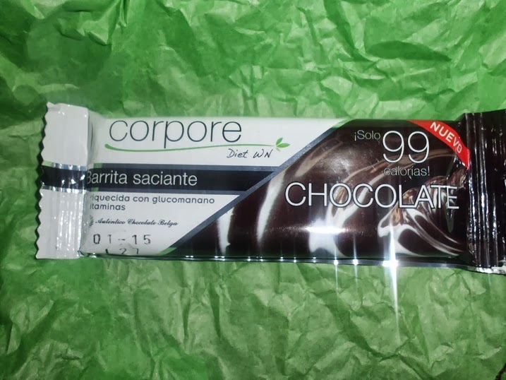 Corpore Diet Barrita Saciante Chocolate, talla original (20 gr) 1? Para cuidarse sin renunciar al mejor chocolate con esta barrita enriquecidad con glucomanano y vitamina, solo tiene 99 calorías. He recibido una barrita.