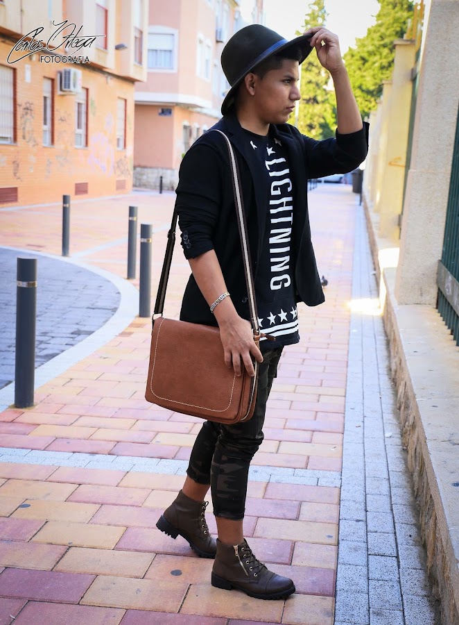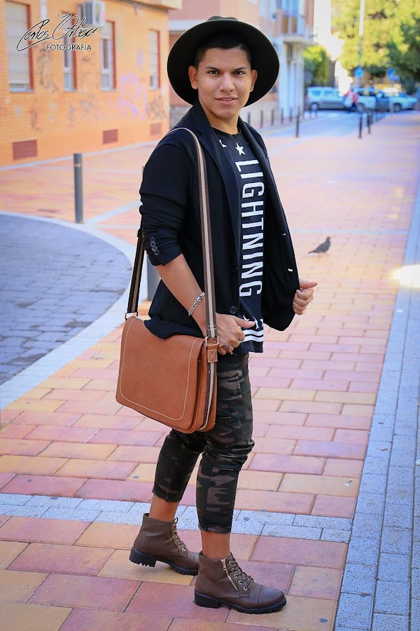 Este estilo es perfecto para la temporada otoñal, por las tonalidades verdes y marrones de todo el outfit. El toque americano lo aporta el estampado militar delos pantalones y el botín.¡La combinación de camuflaje con botín en color tierra siempre funciona!