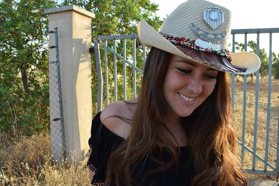 Buenas tardes!! Hoy tenía ganas de enseñaros este look, como veis es bastante sencillo pero el sombrero me encanta y más porque lo he customizado yo misma. Fue muy fácil aunque me llevó tiempo, solo necesité un trozo de cuero para hacer los flecos y algunos collares que ya no usaba, igualmente los puedo poner y quitar si me canso. Espero que os guste y si os animáis a decorar alguno de vuestros sombreros me gustaría verlos! Feliz jueves a todos!!