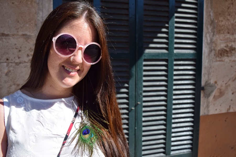 Buenos días! Ya queda menos para el fin de semana, qué ganas!! El look de hoy es muy sencillo, como veis, pero me gusta añadir accesorios un poco más especiales como las gafas redondas (gracias a Raza clubber), el pendiente pluma (DIY) o el bolsita estampado (gracias a Dolores Promesas) para darle un aire más boho y más veraniego, no creéis? Siempre digo que la moda es para divertirse y experimentar siempre que una esté cómoda con lo que lleva. Espero que os guste y Feliz Jueves!!