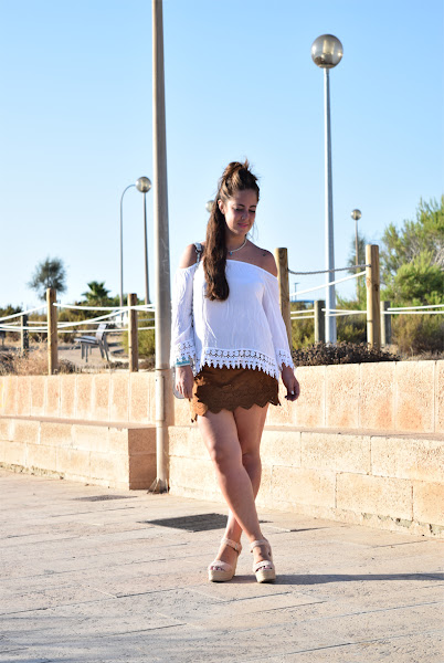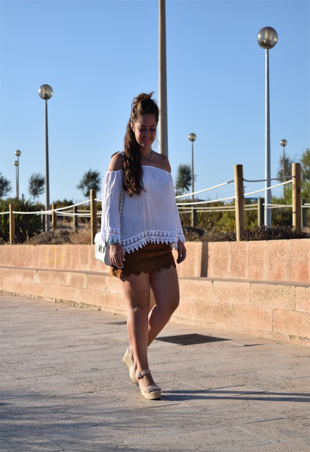 Buenos días, ayer (por problemas técnicos) no pude subir el look que tenía preparado y aunque no suelo hacerlo en fin de semana aquí lo tenéis. Estoy enamorada de esta blusa, la vi y no lo dudé ni un segundo. La combiné con esta falda de ante marrón y sandalias de esparto, un look cómodo para disfrutar del atardecer cerca de la playa. Espero que os guste y disfrutad mucho del fin de semana!
