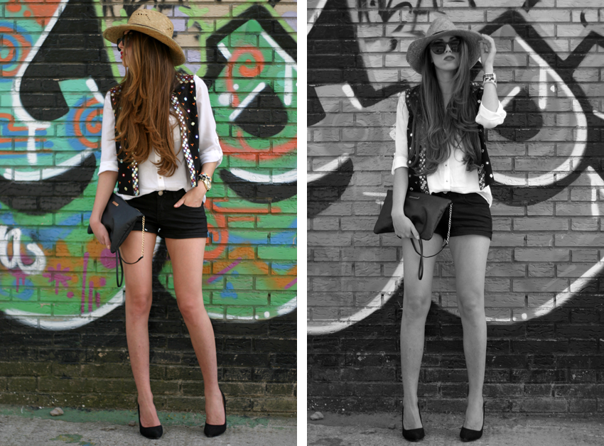 I"m wearing: Heels/Tacones - Shana(Old), Bag/Bolso - Primark(FW13-14), Shirt/Camisa - Pull&Bear(SALES13-14), Hat/Sombrero - Beach(Old), Shorts - Pimkie(Old), Vest/Chaleco - Lefties(SS14).