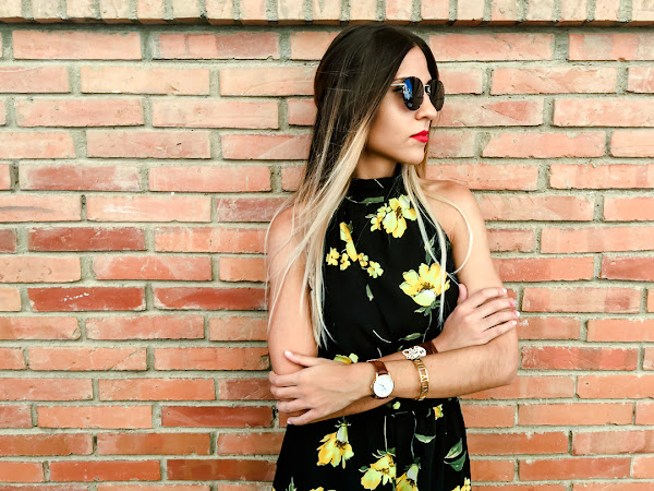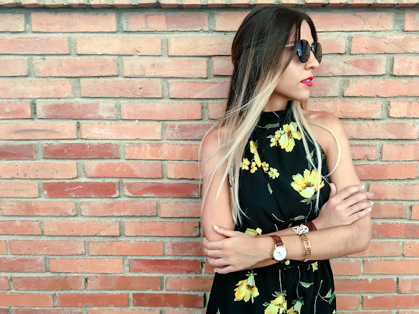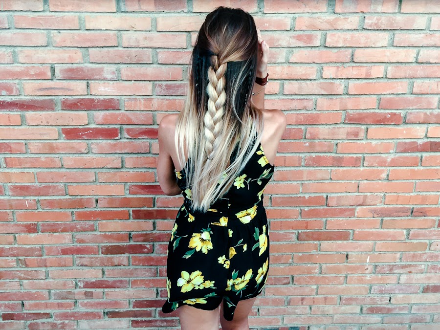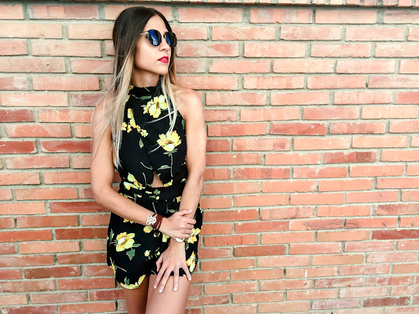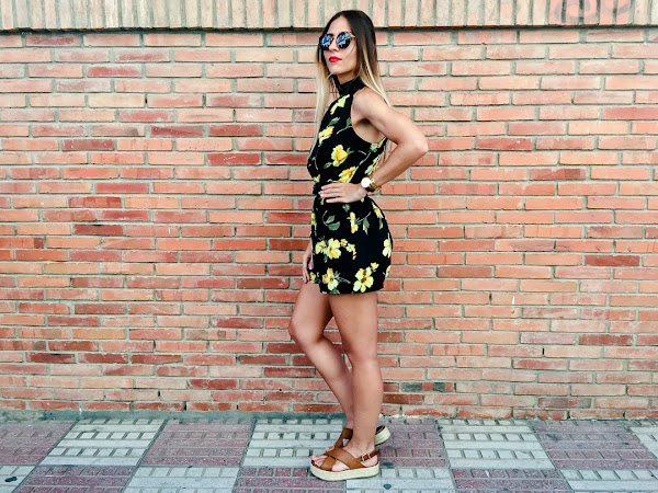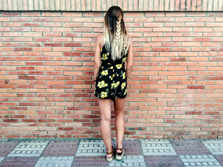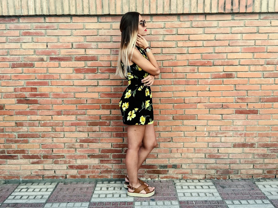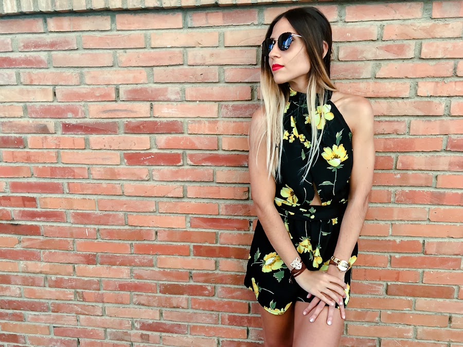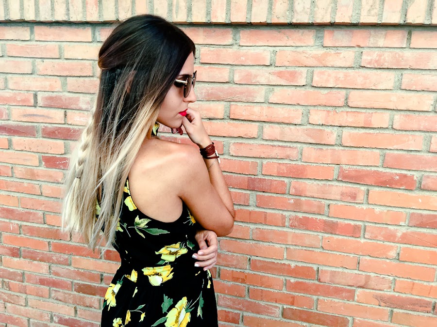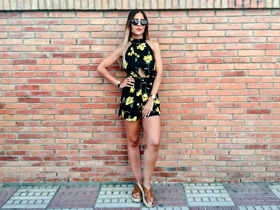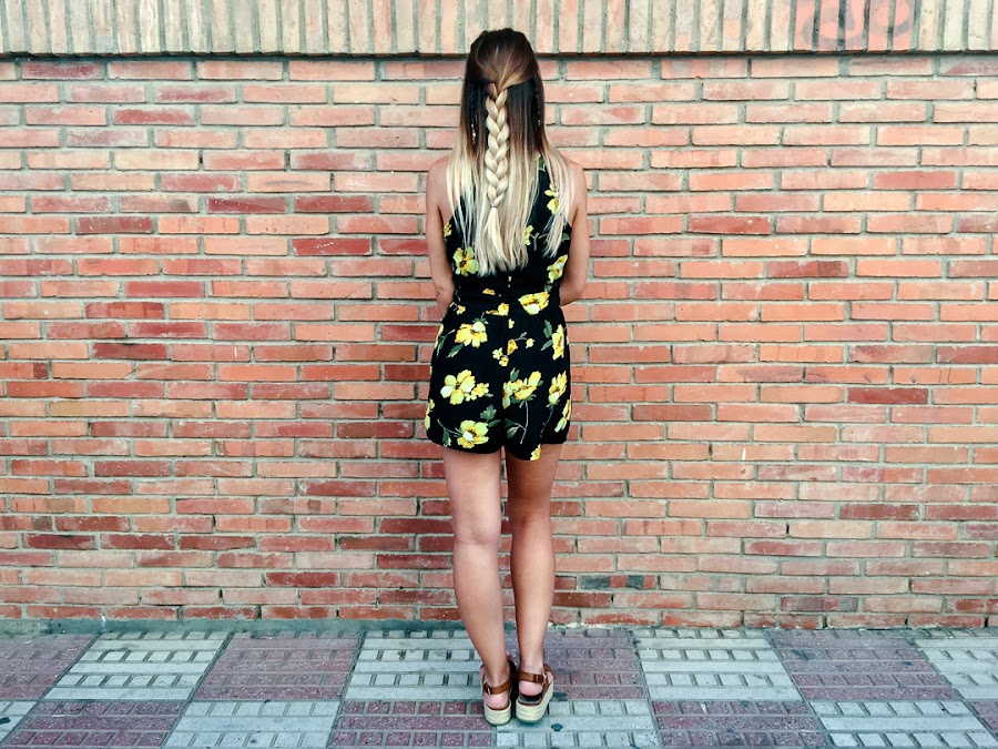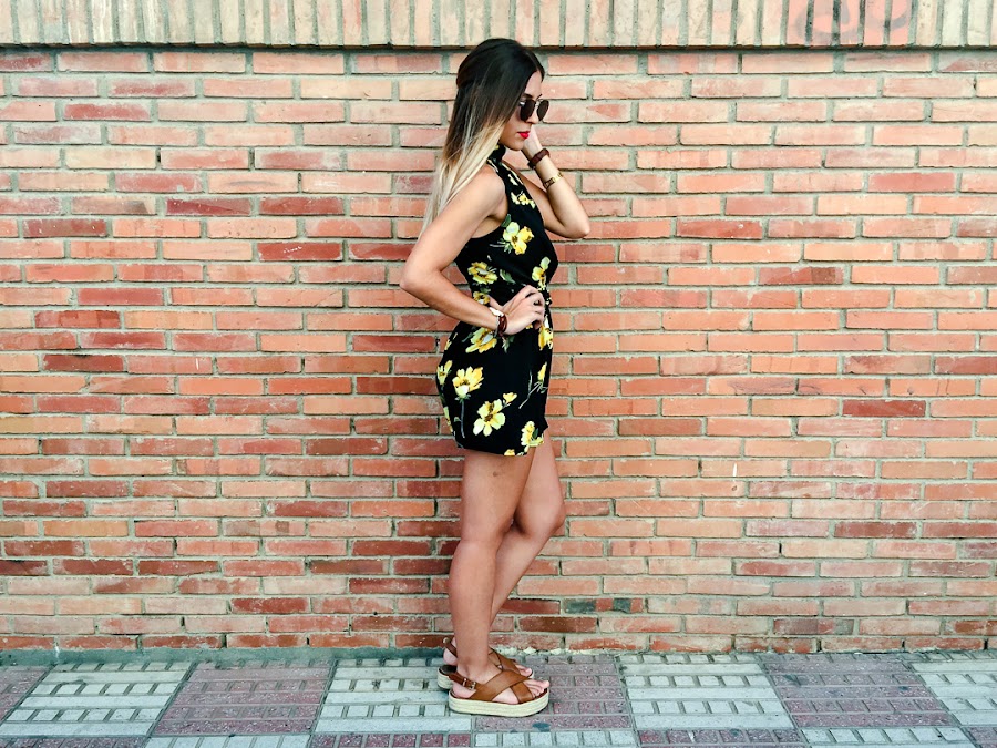 Y ahora ya por fin toca un poco de relax, portátil y nuevo post! Sabéis lo que me encantan los looks con toques boho y este mono se ha convertido en uno de mis favoritos. Es de ALANNA CLOTHING y me chifla su estampado con esas flores amarillas que le dan mucho color. Además, me encanta su escote halter con un triángulo debajo del pecho, que le da un toque sexy. Lo he combinado con mis sandalias de esparto y un peinado muy de estilo boho.
