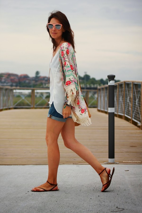 Kimono: Sheinside; Short: Mango; Bolso/Bag: Sabrina vía Spartoo; Sandalias/Sandals: Bershka;