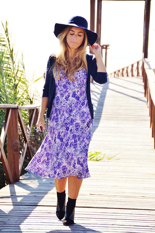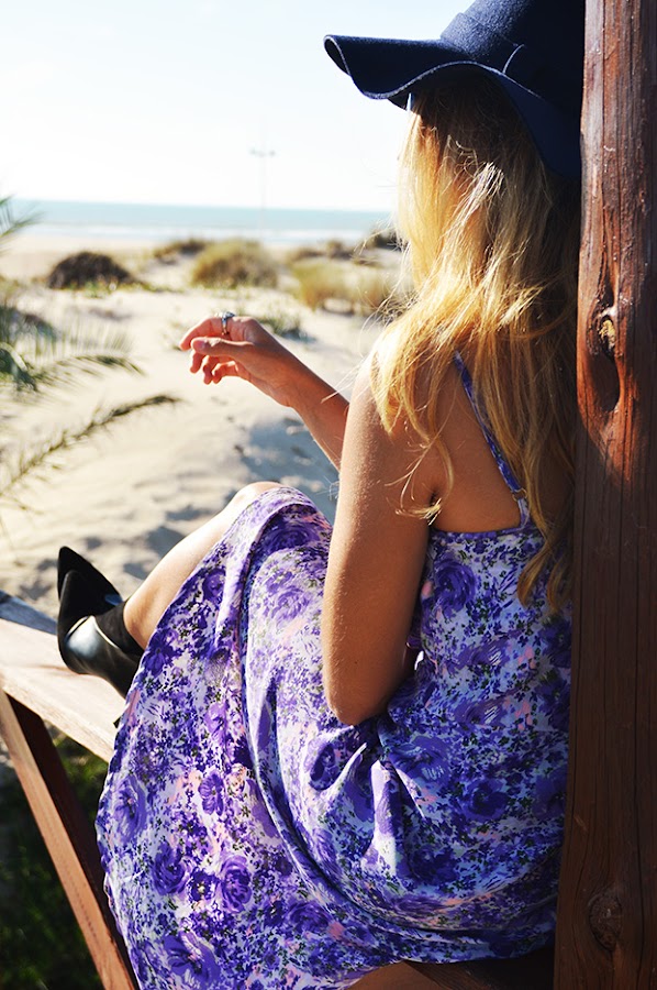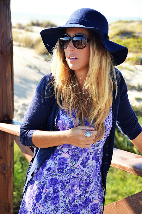 Today´s outfit: bohemian style, with two basic pieces of this style: floral dress and fedora hat. As complements a maxi ring and, in order to give the outfit my personal touch, high-heeled booties. Hope you like it.