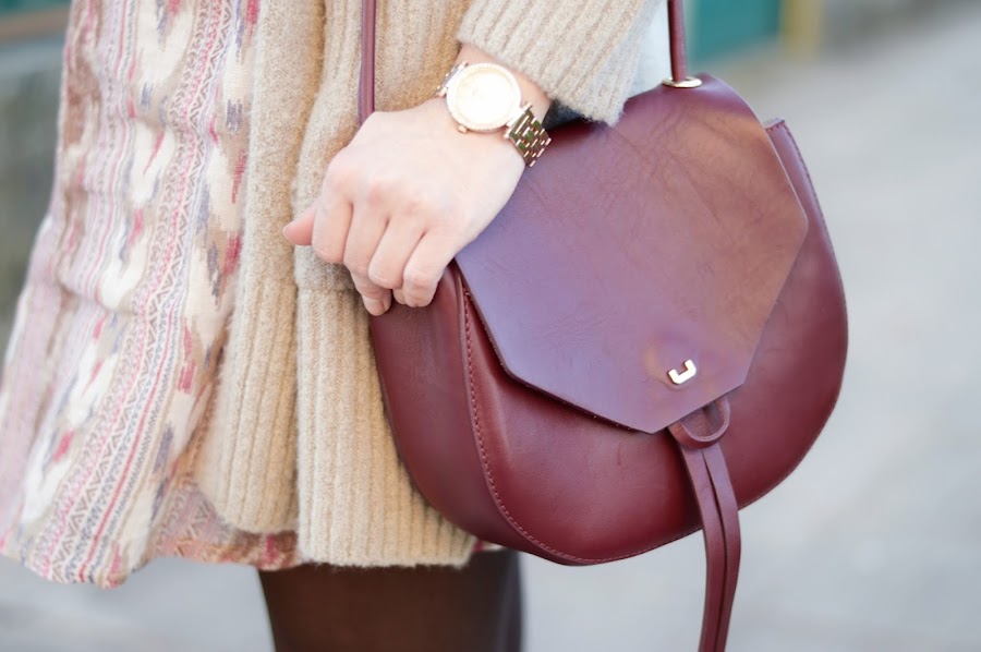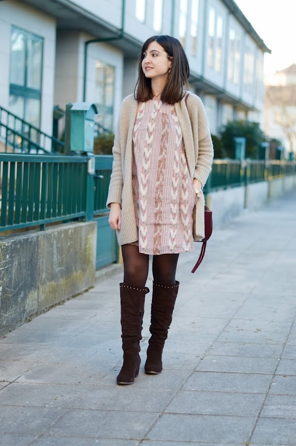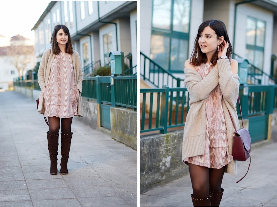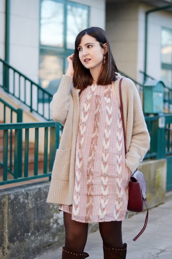 Vestido: Mangooutlet / Chaqueta: Zara / Bolso: Adolfo Domínguez / Botas:Shoes&Piel / Pendientes: Parfois