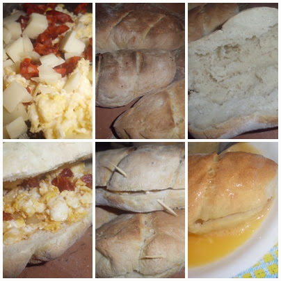 Mezcla el chorizo, el queso y el huevo a la plancha picados y rellena los bollos con esta mezcla.
