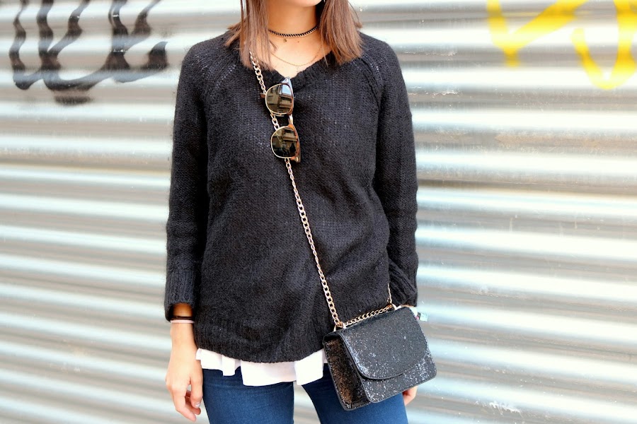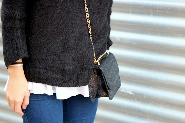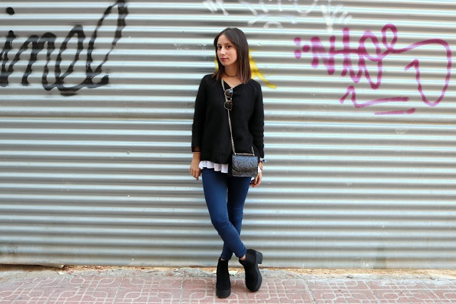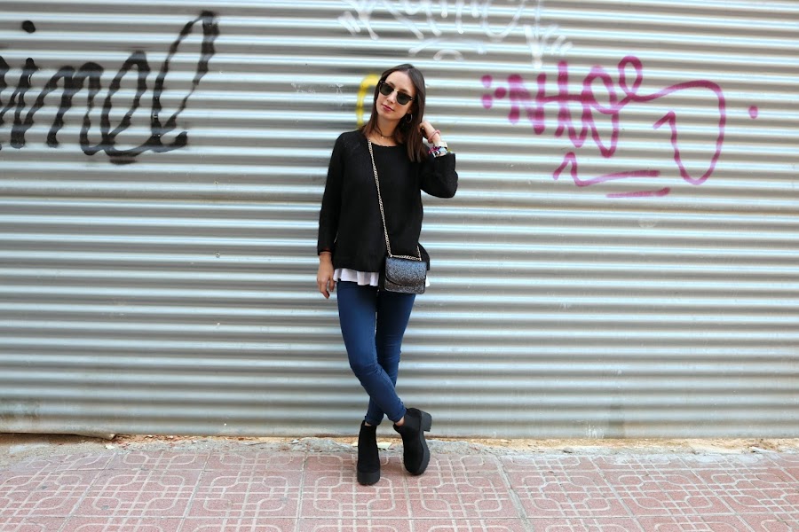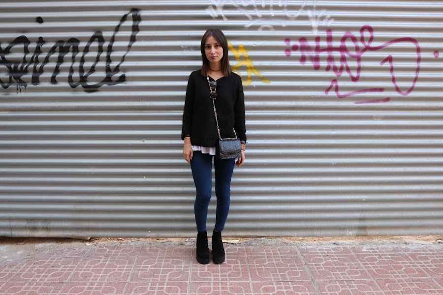 how was your weekend? I had class on Friday, yes... Im always complaining but Im always bundled up and overwhelmed. The worst, next Saturday also I have class, but the good thing is that I do not have to go already obligatorily and, therefore, I will not go. Also, this week I will go up and doubt that I can upload some more post because I have two exams that canvas. Even so, on Friday I finish until the exams of January and more or less, and for the first time, I will be able to rest at Christmas. Although I have to admit that I have always taken them because Christmas is a date that I love. Well, today I upload a look the other day and I have to say that I love it because those booties have me more than in love and when I wear them I see that everything fits me well. Do not you pass on some clothes? Usually passes me with shoes and jackets. I put it on and I look pretty even if it is a mess haha. And over the bag I wore I love it. My mother bought it from my little sister and she has never put it on because its theoretically a party bag, but why not put it on a day-to-day basis? What do you think? Go, Ill leave you calm with the photos. Well, no, because I have to say that Im super happy because this month Im getting more visits than ever and its your thing, so I have to say thank you. Already yes, I leave you with the photos. I hope you like it and see you soon!