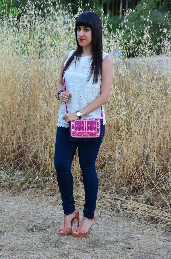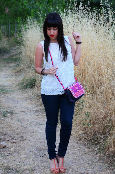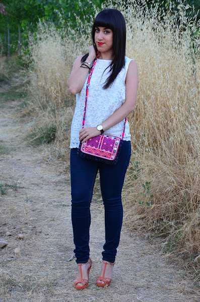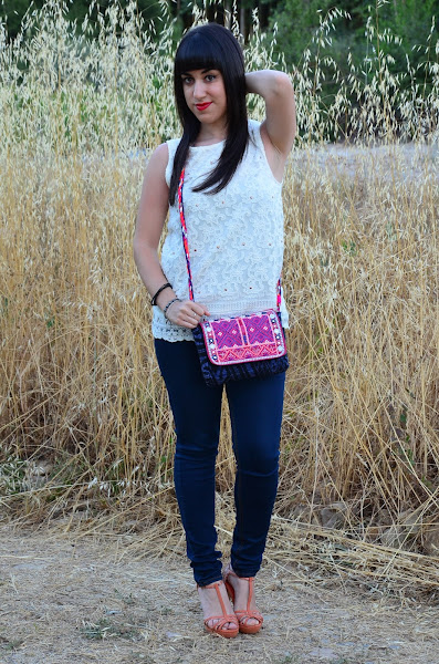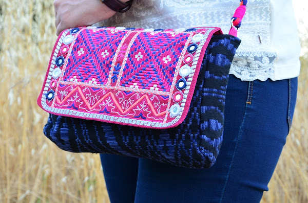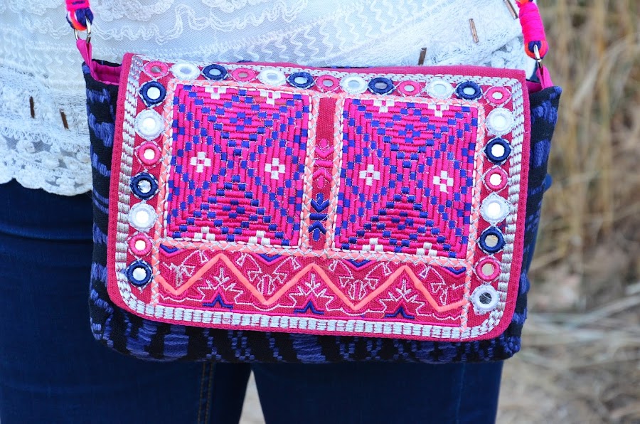 Siempre me han llamado la atención los bolsos de espejitos, con ese estilo étnico y colores vivos lo hacen un complemento ideal para el verano. Hoy estreno el mio, en tonos rosas y azules, una auténtica cucada :)