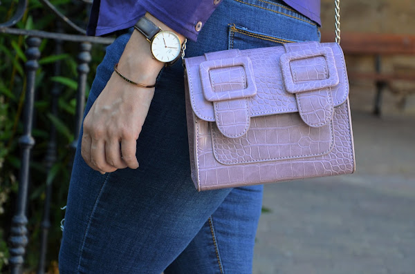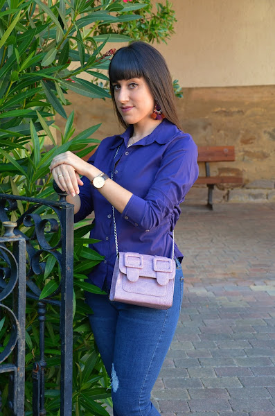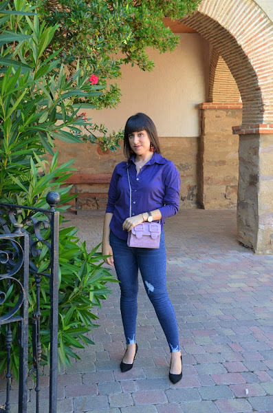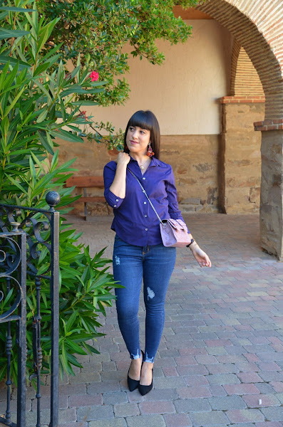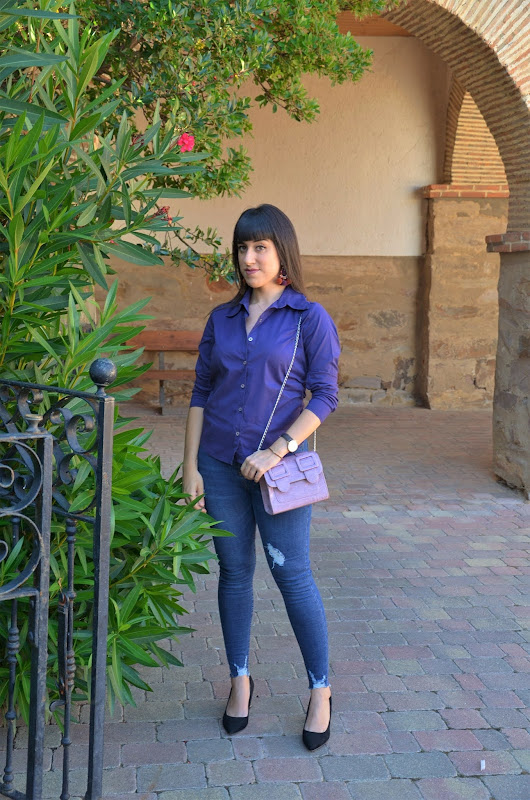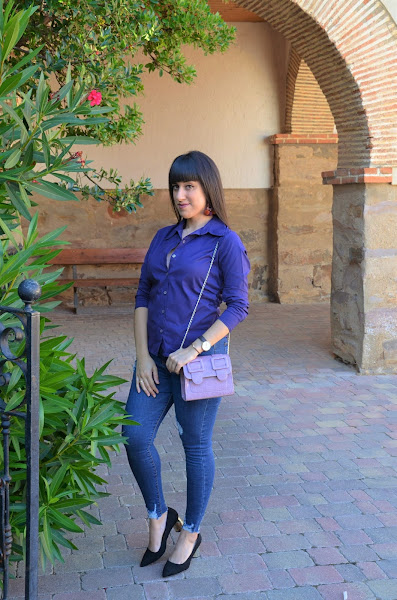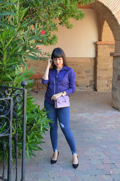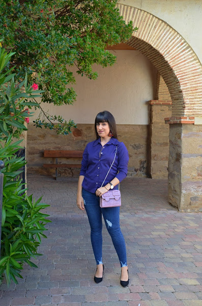 La camisa, morada también, es de mi madre, una de sus prendas fetiche, ya que tiene fruncidos en los laterales que le dan ese toque tan especial. Me la he tomado prestada jaja.