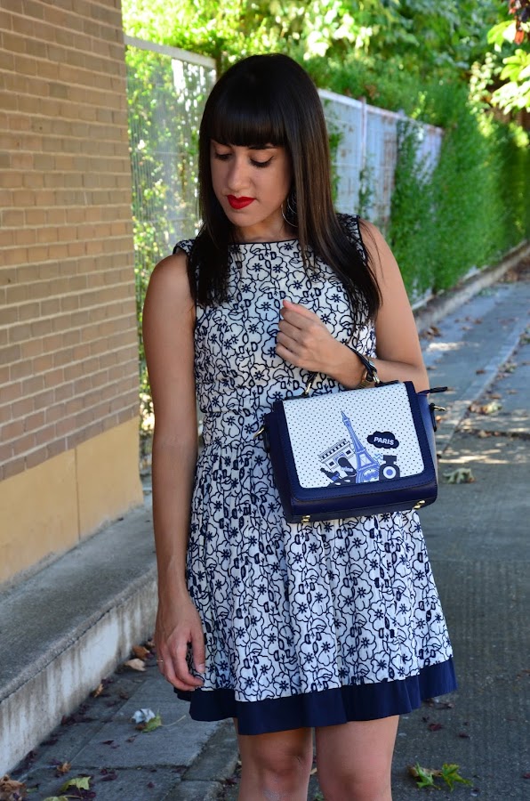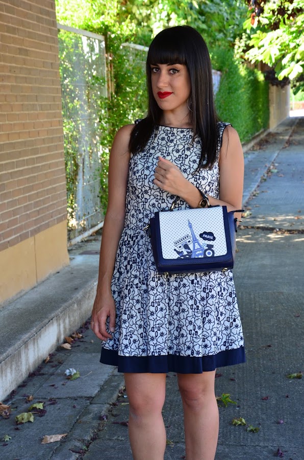 Hoy hace tan buen día y me he levantado tan positiva que no he podido evitar coger mi vestido favorito y mi nuevo bolso de Rosegal inspirado en la ciudad de la luz, París.