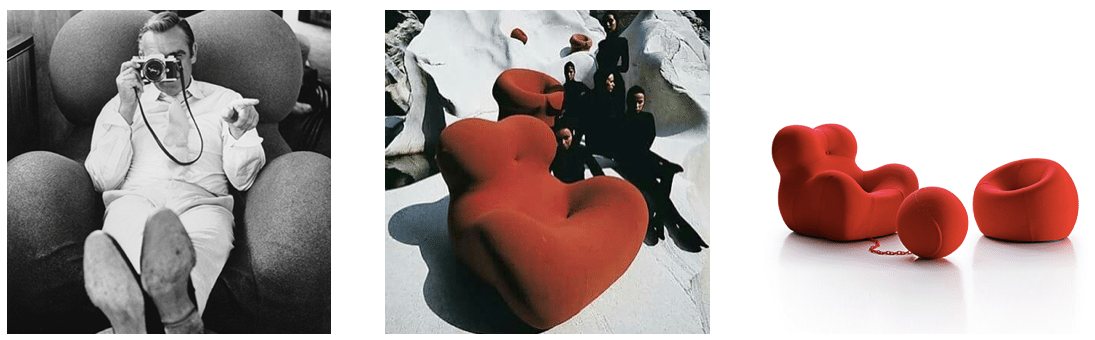 Su estilo combina un aspecto alegre y elementos de color con formas sorprendentes que a la vez se ven como convencionales. La silla Up, diseñada en 1969 y producida por B&B Italia, recuerda a una mujer, una madre que nos invita a sentarnos y a acurrucarnos en sus rodillas.