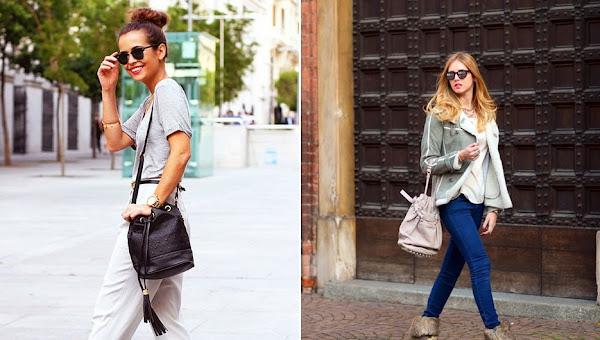 Hay infinidad de formas y colores para los bolsos, grandes, pequeños, de forma cuadrada, redonda, geométricos...pero lo que viene esta temporada son los bucket bag, en forma de saco o también llamados "bomboneras". Fáciles de combinar y aportar un aire diferente a nuestros looks diarios.