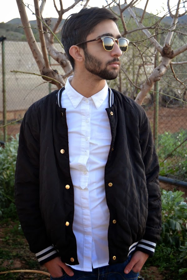 Una de mis bomber favoritas es color negro irrevertible, un lado granate estilo al fieltro (no me gusta), y el otro como de raso negro con unas líneas en los puños bastante bonitas. Lo combiné con una camisa blanca y unos vaqueros pitillos para distorsionar el estilo del outfit, ni demasiado arreglado, ni demasiado casual. Os dejo que juzguéis vosotros mismos. Las clásicas Converse blancas también se apoderaron de mis pies, y todo en conjunto crearon esto.