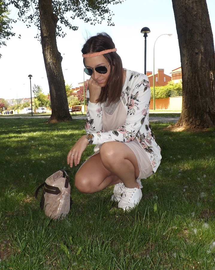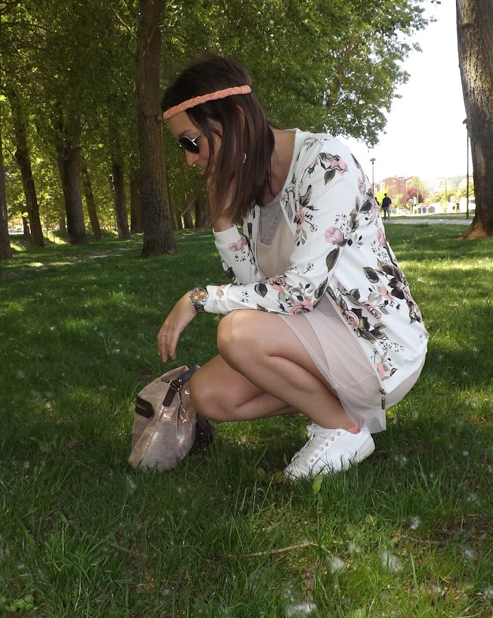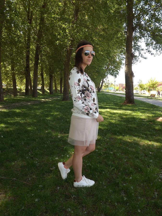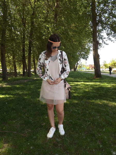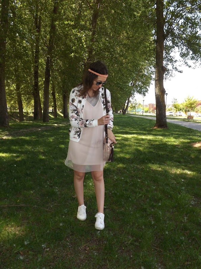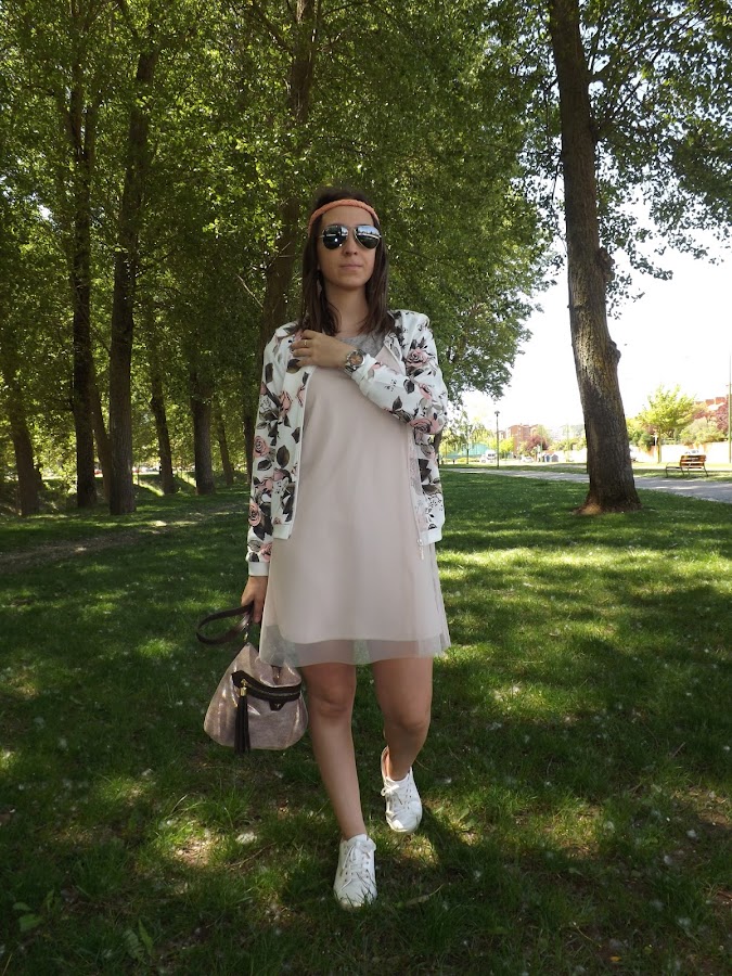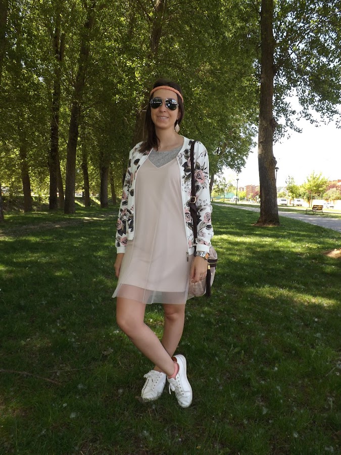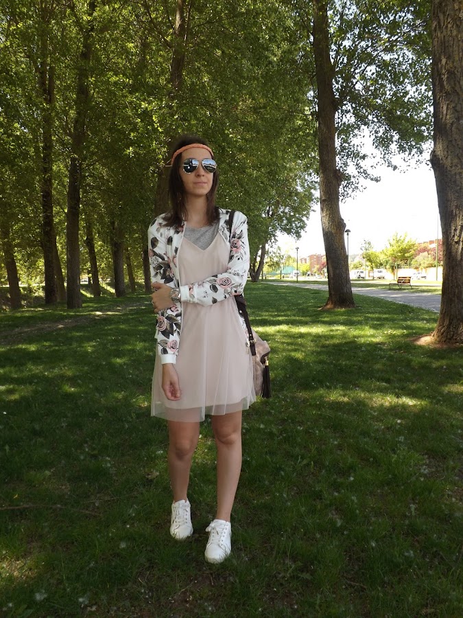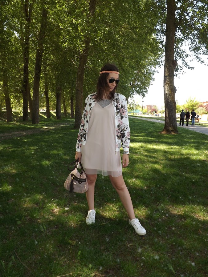 We start the week with a look that I specially like. I showed you the drees in a formal way here. This time I combined it with a grey T-shirt under the dress, sneakers, my new bomber from Rosegal and a headband.
