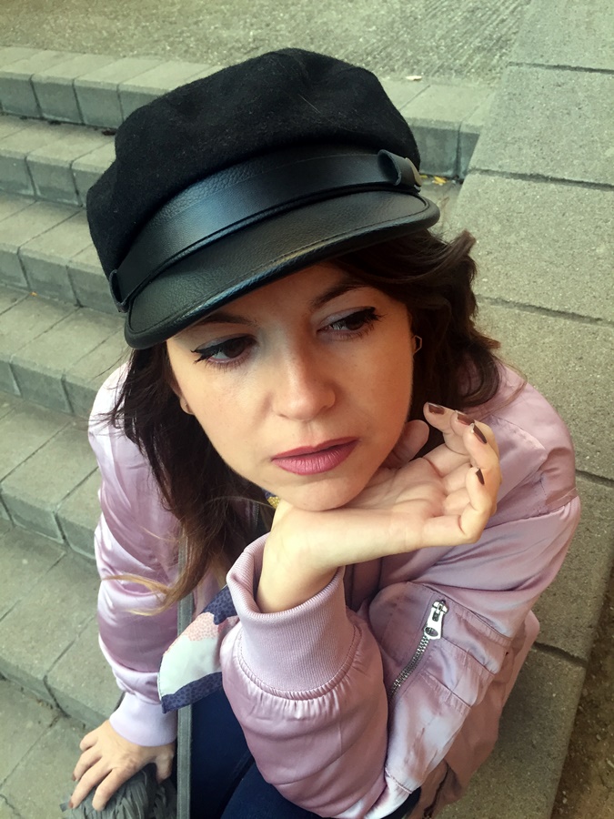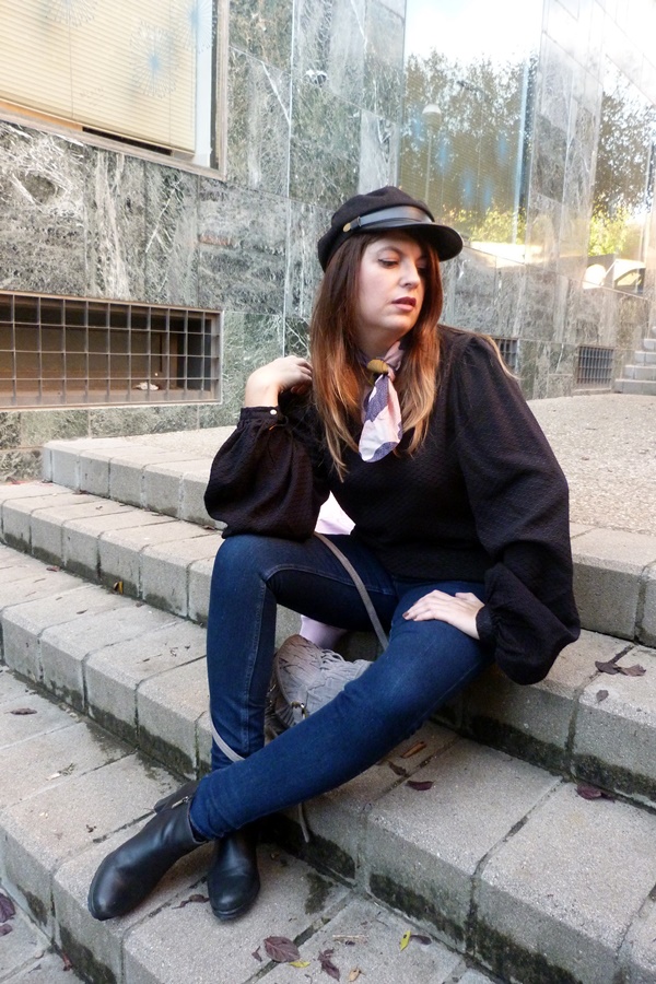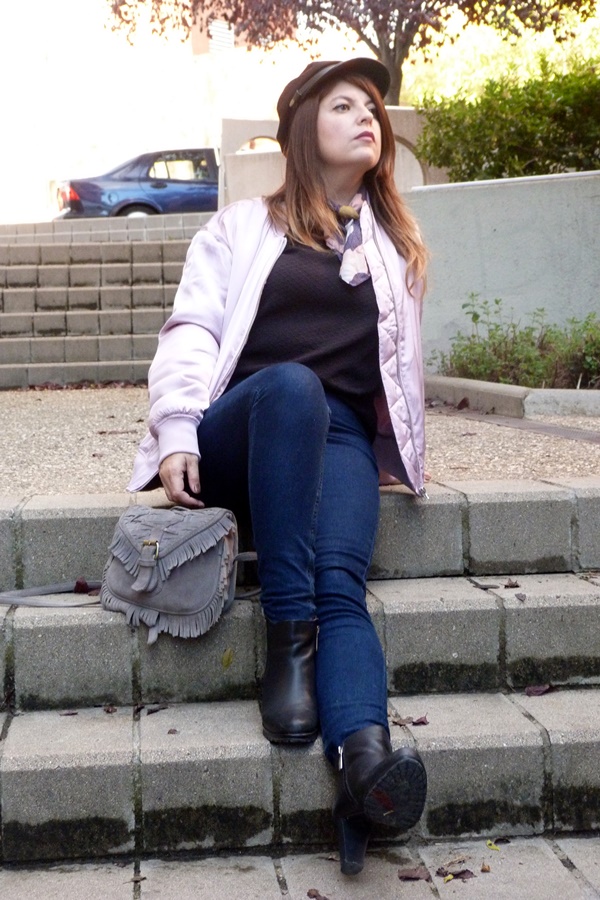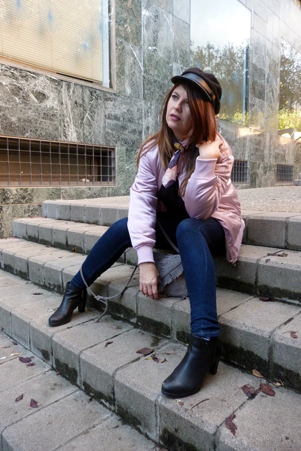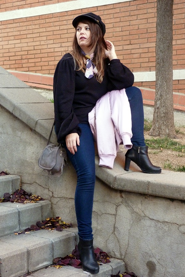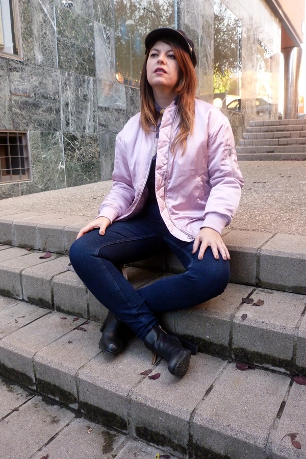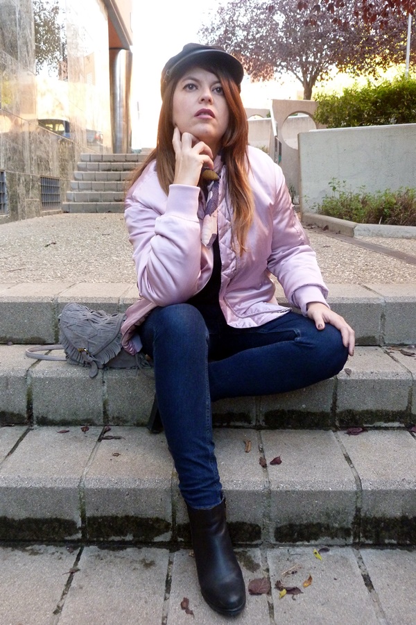 Y ahora sí, veamos el look de hoy, por aquí no había enseñando mi bomber rosa, sí yo también caí en esa pieza abrigo icono de los 90 hehe ésta vez la combiné con jeans ajustados, camisa vintage con mangas abullonadas, pañuelo al cuello y como complementos botines negros y gorra marinera, y éste fue el resultado ;)