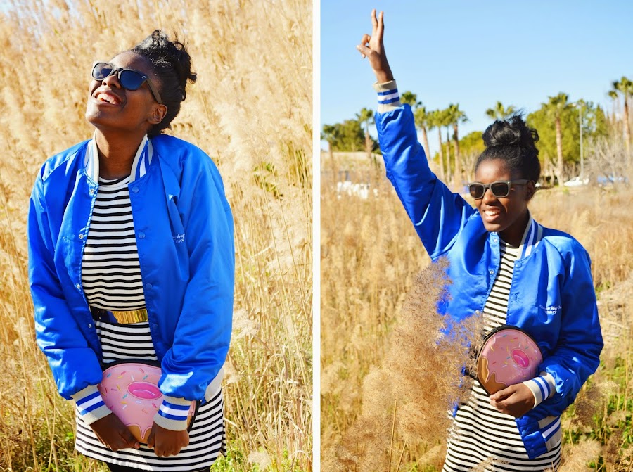 En este post (AQUÍ) os hablé de la tienda Flamingos Vintage Kilo Murcia , y de que me había comprado unas prendas, pues una de ellas es esta preciosa bomber que me tiene enamorada.