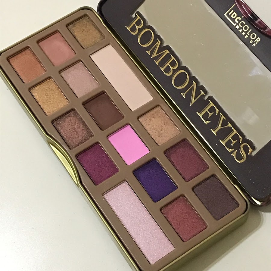 Bombon Eyes se presenta en un packaging de lata con cierre imantado . El diseño exterior imita una caja de bombones , dentro aparece el nombre de la paleta en letras doradas y con relieve . Incluye un espejo que no está mal para tratarse de una paleta low cost .