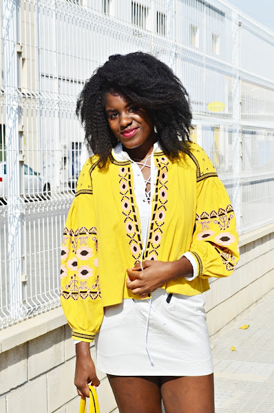 Cuando vi esta chaqueta en la página web de Rosegal me enamoré y sabía que tenía que ser mía.Me la puse por primera vez para viajar a Birmingham hace unas semanas y esta sesión es de como lo llevé el dia del pilar. Al elegir las prendas en blanco y plateado, todo el protagonismo se lo llevó la chaqueta.
