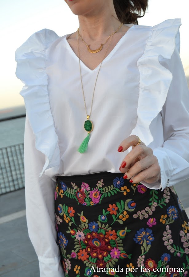 Ya sabéis lo que me llega a gustar una prenda bordada, pero si encima esta bordada sobre una tela con estampado vichy es que ya me enamoro por completo. Este es el caso de la camisa que llevo hoy, fue un flechazo nada más verla. Hoy la combino con pantalones azul marino y complementos fucsias. Además os recuerdo que si os gustan las joyas de Soufeel que llevo, tenéis un 10% de descuento en todas l ...