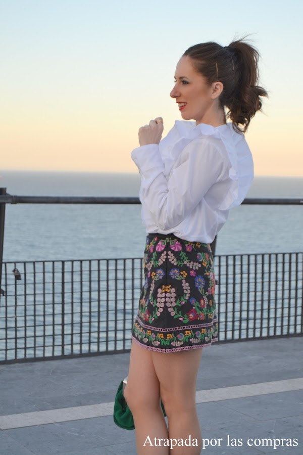 Tres tendencias en una sola prenda, una falda de rayas con bordados y volantes, una prenda muy especial que combinada con una simple camiseta blanca nos sirve para crear un look super chic y de tendencia. Además es una prenda muy favorecedora porque al tener corte pareo estiliza y alarga las piernas. Con ella creé un look casual y muy cómodo, una camiseta blanca básica pero con un toque diferente ...