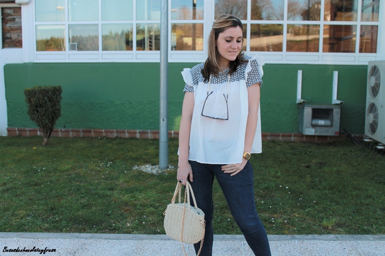 En esta ocasión decidí apostar por un look cómodo, apostando ya por complementos de temporada como es el capazo en color crema y el sujetagafas de conchas, otra de las tendencias que vuelve piando fuerte este verano (en pendientes, pulseras, collares, anillos...)