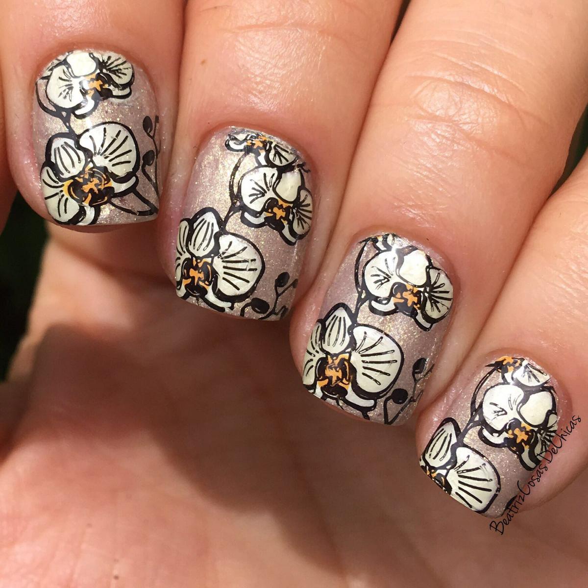 Que os han parecido las placas?!?! Os gustan?!?!?! A que solo se ven reverses y mas reverses…..ainssss que vicio! jajajaja Bueno y ahora para poner un broche de oro al post de hoy….Os dejo la manicura que me hice con la placa de Flores, la base es un Nude con Purpurina dorada es el 479 de Kiko y lo compre este invierno con la oferta de 5 esmaltes por 5…vaya precio para esta monada de esmalte!!!
