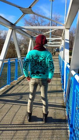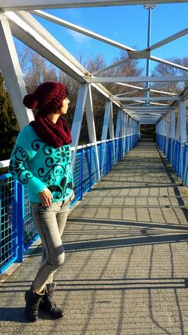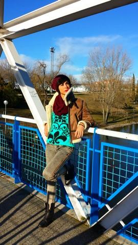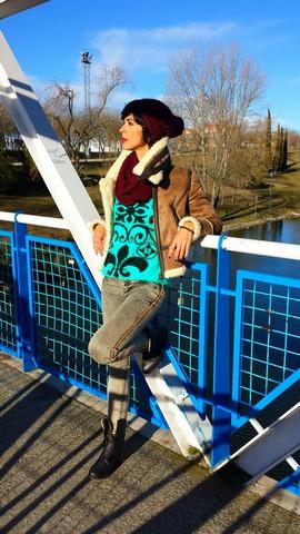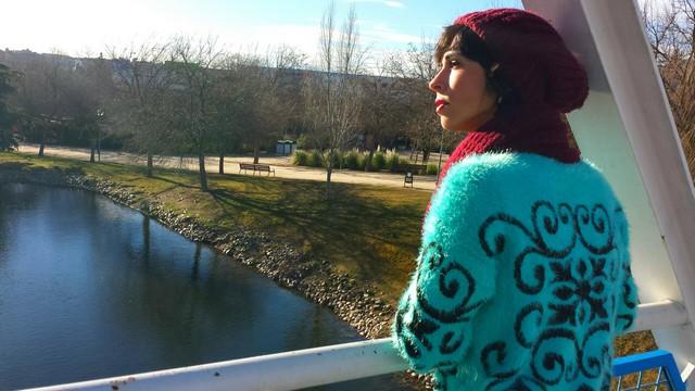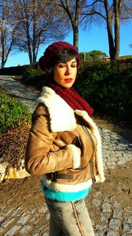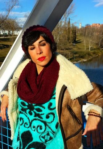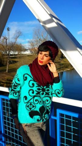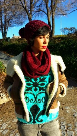 El jersey lo encontré de casualidad, en el último de los últimos percheros del puesto del Mercadillo de Majadahonda, talla única con un color y unos dibujos geniales. Con pelito suave por fuera y calentito por dentro.