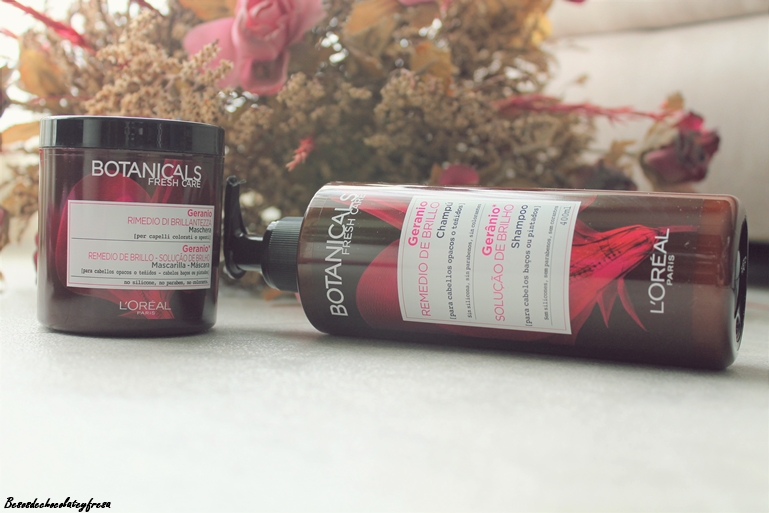 Existen 4 variedades a base de azafrán, camelia, cilantro y geranio. Yo en concreto estoy probando esta última a base de geranio, una flor brillante y con mucho color junto con la soja y el coco. Champú y mascarilla de 400 y 200ml, específicos para reparar cabellos apagados o teñidos que podeis encontrar en perfumerias o en webs como Maquillalia a un precio de 7,95 cada uno.