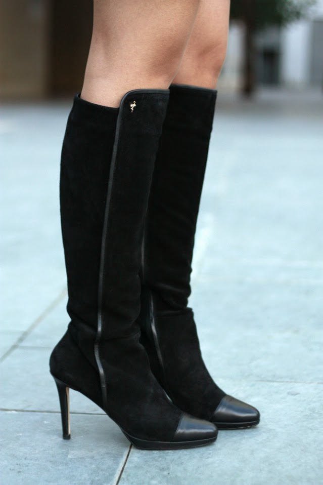Mención especial merecen las botas, tenía ganas de unas altas negras y con tacón de aguja, creo que es un básico que no puede faltar en ningún armario. Estas, además de preciosas, son comodísimas, las llevé toda la tarde y ni enterarme de que iba con tacones.