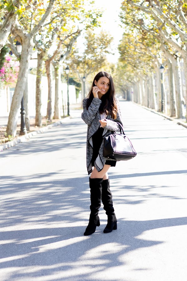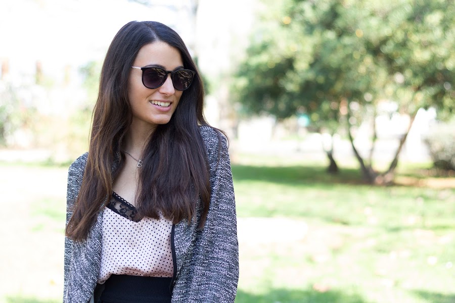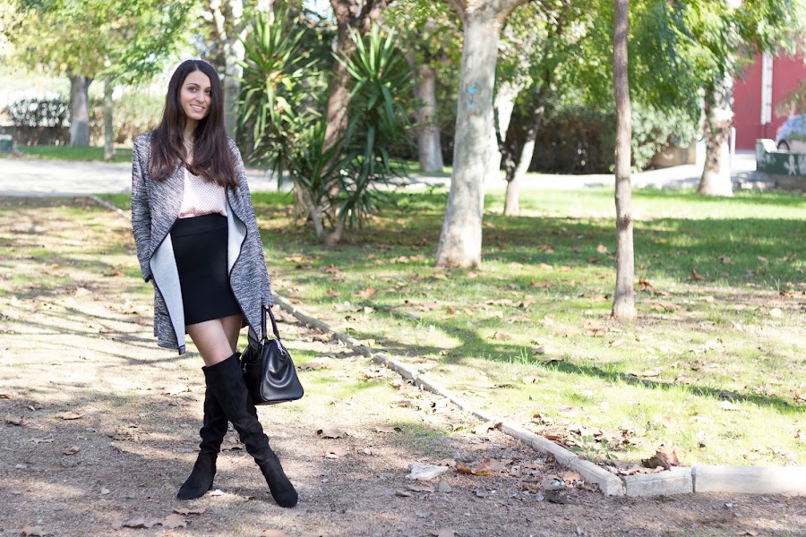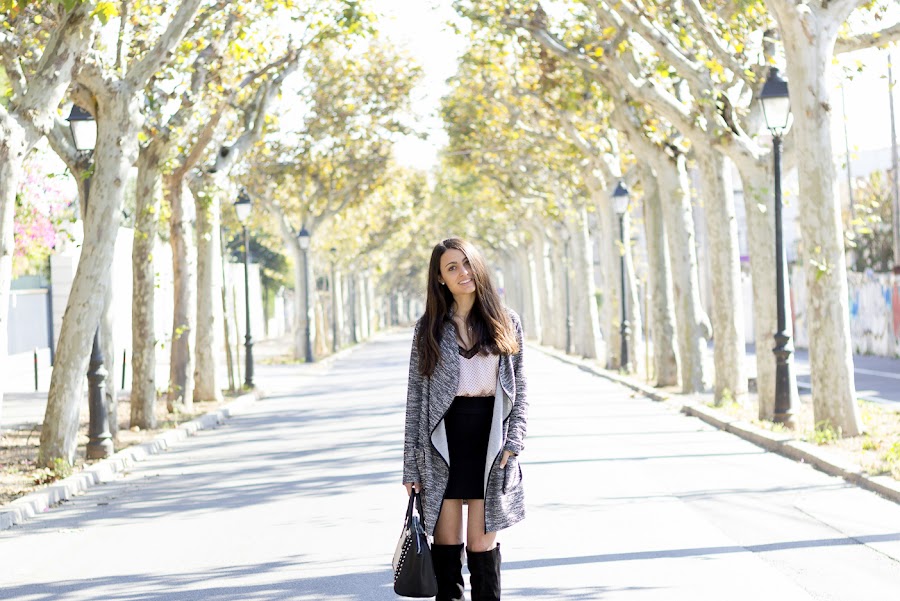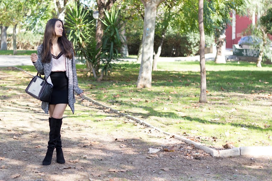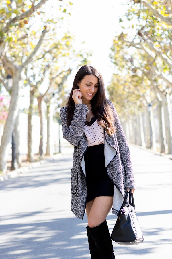 El look que os dejo hoy esta compuesto por un top lencero y una faldita negra que he combinado con mi nuevo cardigan gris jaspeado y negro de la firma SEÑORETTA (Hace poco os presente un precioso vestido de la misma marca). ¡¡Me encantan este tipo de prendas de punto en otoño invierno!!