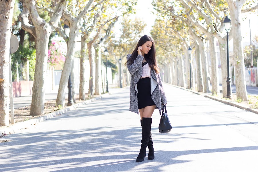 El look que os dejo hoy esta compuesto por un top lencero y una faldita negra que he combinado con mi nuevo cardigan gris jaspeado y negro de la firma SEÑORETTA (Hace poco os presente un precioso vestido de la misma marca). ¡¡Me encantan este tipo de prendas de punto en otoño invierno!!