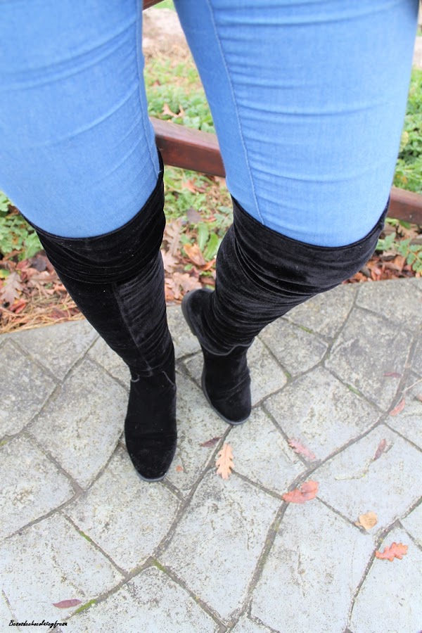 Como os enseñaba la semana pasada, las botas por encima de la rodilla se han convertido en todo un "must have" de la temporada. Las botas efecto media que se adaptan a la perfección a la silueta de la pierna, apta para las que las tienen delgaditas o algo más anchitas, para todas. Y las hay de multitud de tejidos, como estas de terciopelo