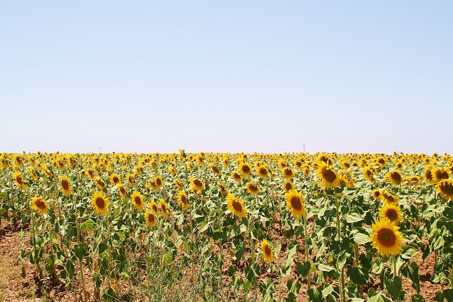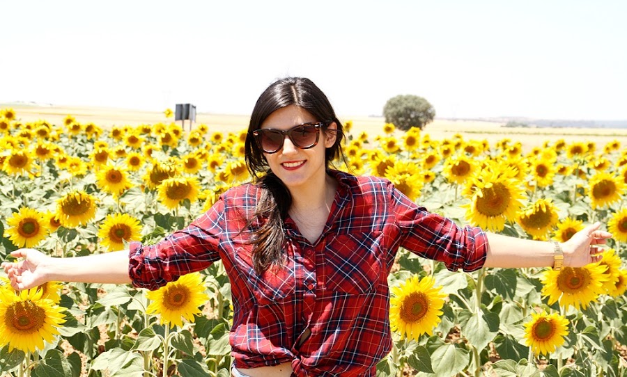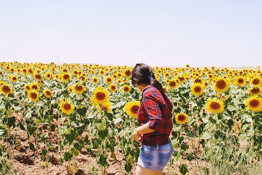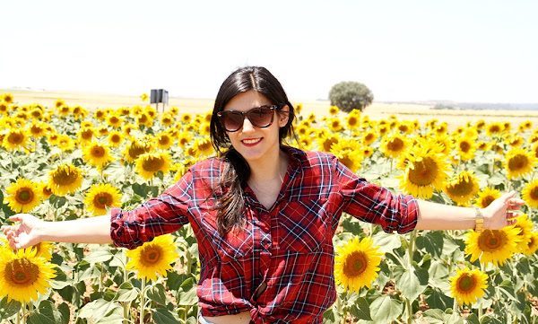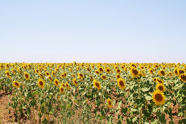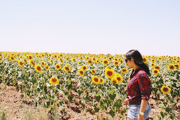 De vuelta de la finca nos topamos con un enorme y precioso campo de girasoles, y no pude evitar bajarme del coche y sacarme agunas fotos. ¡Me encantan!